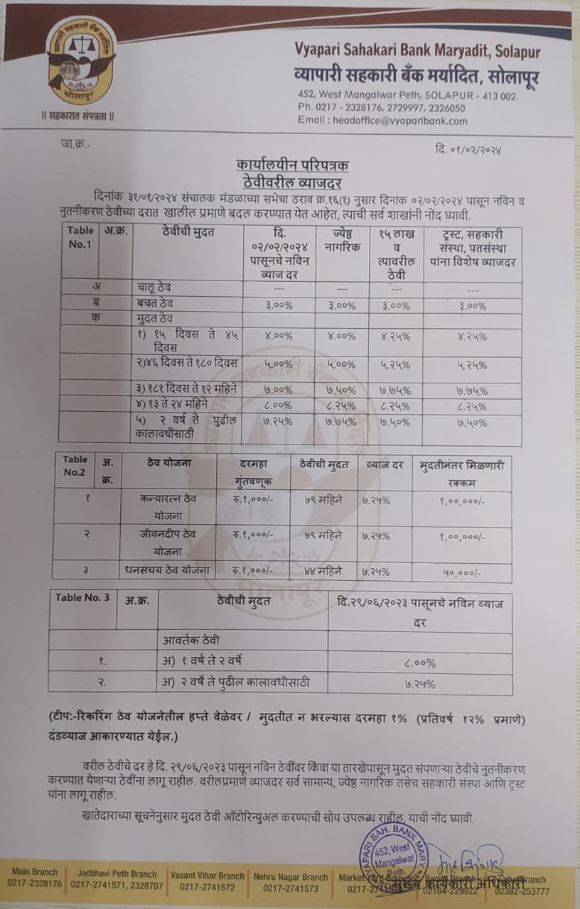 Vyapari Sahakari Bank Maryadit, Solapur